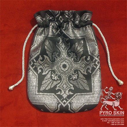 Black silk bag for Tarot cards or any magical accessories with silver cross embroidery.