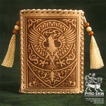 Leather bag for Tarot cards or any magical accessories with engraved image of immortal Phoenix rising from its own ashes.