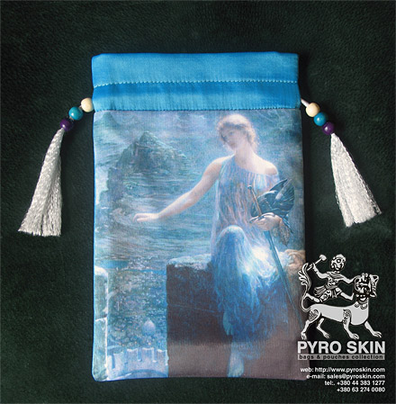 Silk bag for Tarot cards or any magical accessories with image of a picture of the well-known English English painter Edward Robert Hughes "The Valkyrie's Vigil".