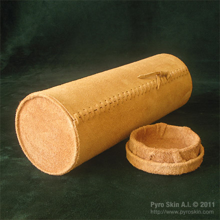 Big size leather tube case made for storage of leather scrolls, gift certificates on leather or any other necessary accessories. Its height - 350 mm, external diameter - 100 mm, it is densely closed by a cover.