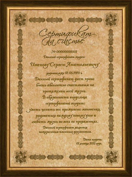 And it is very simple - present to your friend certificate of happiness which will constantly remind him true value and purposes of life.