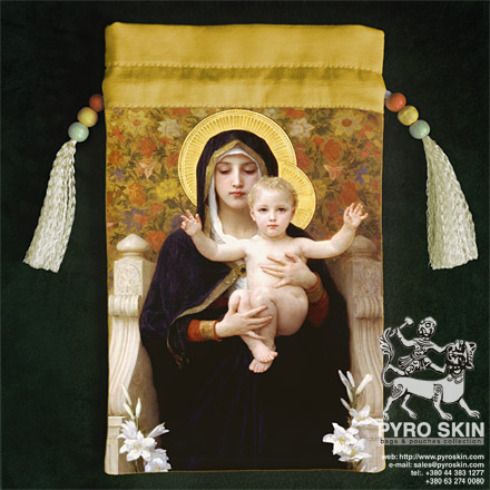 Silk bag for Tarot cards or any magical accessories with image of a picture of the well-known French artist of romanticism era William-Adolphe Bouguereau "La Vierge au Lys" (The Virgin of the Lilies).