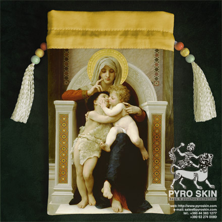 Silk bag for Tarot cards or any magical accessories with image of a picture of the well-known French artist of romanticism era William-Adolphe Bouguereau "La Vierge, L'Enfant Jésus et Saint Jean-Baptiste" (The Virgin, Jesus & Saint John Baptist).