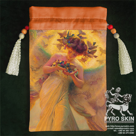 Silk bag for Tarot cards or any magical accessories with image of a picture of the Austrian painter Franz Dvorak "Angel of the birds".