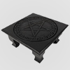 Handmade oak table for magic rituals with pentagram ornamental engraving. Materials: oak, black wood varnish. Sizes: 300 mm (length), 300 mm (width), 150 mm (height).
