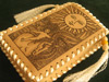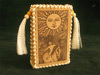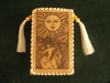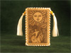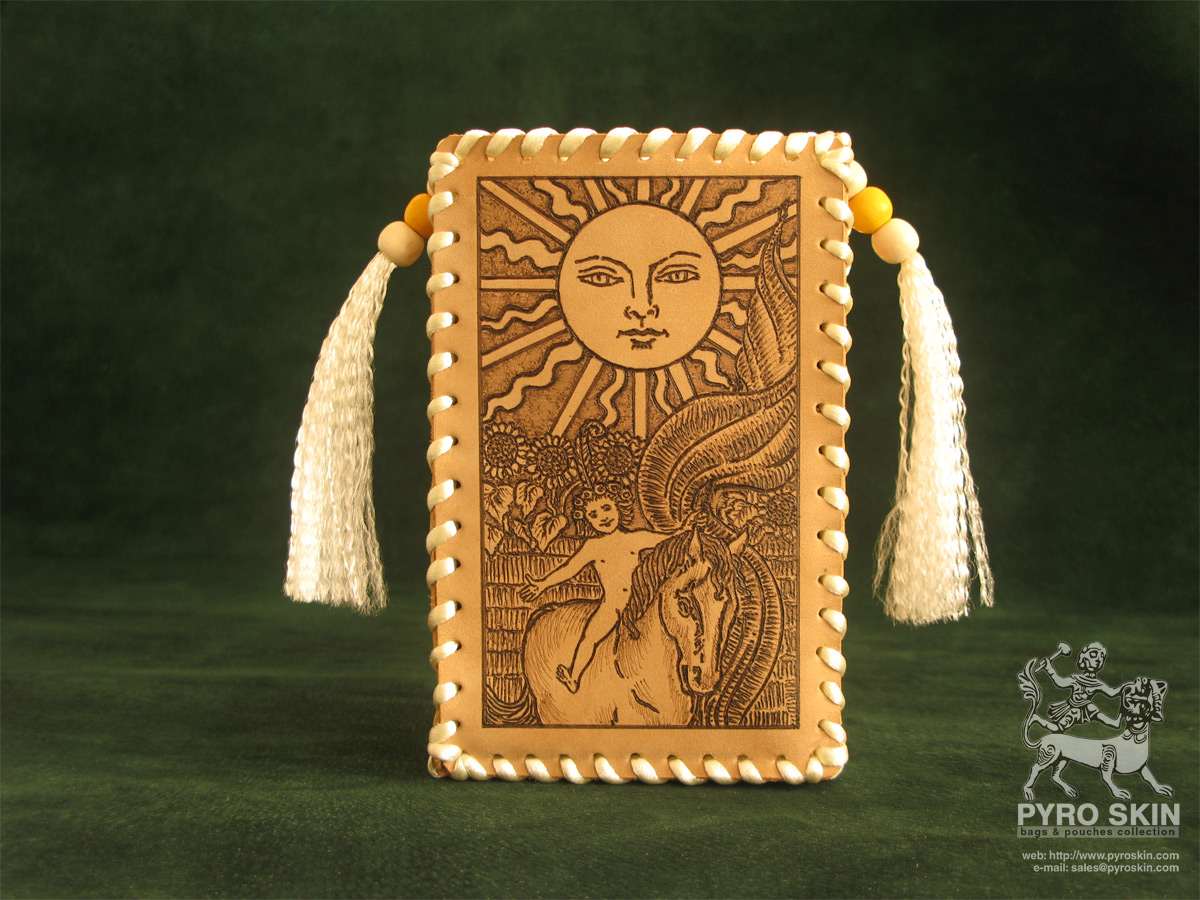 Leather bag for Tarot cards or any magical accessories with engraved image of 19th card from Rider-Waite-Smith Tarot ("The Sun").