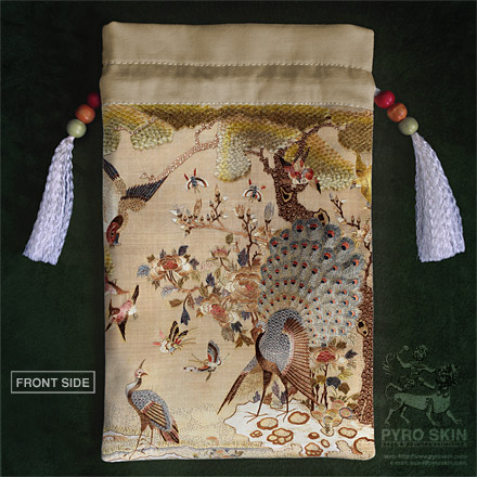 Silk bag for Tarot cards or any magical accessories with image of old chinese silk embroidery of the XIX century - bird's garden.