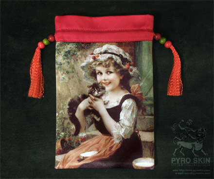 Silk bag for Tarot cards or any magical accessories with vintage image of the girl with kitten.