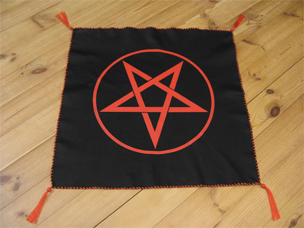 Black leather cloth for Tarot reading and magical rituals with pentagram. Size: 600 mm (length), 600 mm (width).