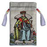 Silk bag for Tarot cards or any magical accessories with wide image of King of Cups card from original Rider-Waite-Smith Tarot deck issued in 1910.