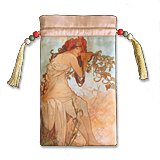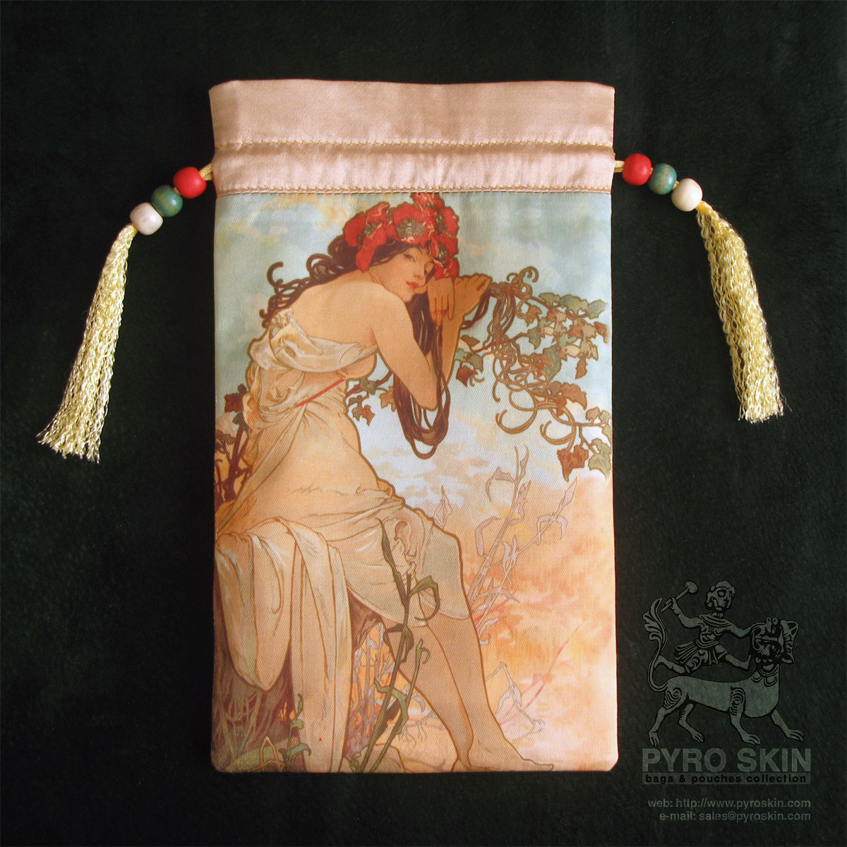 Silk bag for Tarot cards or any magical accessories with perfect image of woman symbolizing Spring of well-known painting by Czech painter Alphonse Mucha.