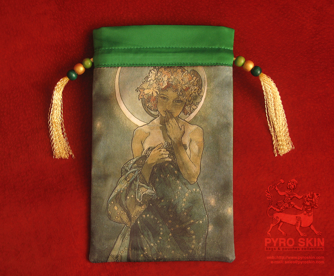 Silk bag for Tarot cards or any magical accessories with perfect image of woman symbolizing the Moon of well-known painting by Czech painter Alphonse Mucha.