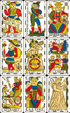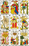 Tarot de Flamand (The Flamand Tarot or Flemish Tarot) is the best known sample of Franco-Belgian tarot, was originally printed in Brussels, Belgium, around 1750-60 by Ignaz van den Borre in wood engravings. The images of these cards vary in some peculiarities from traditional French or Italian Tarots. The deck is partly different from the standard Marseille design, but it follows the Marseille traditional ranking in suits. Though, the images of the deck have the reversed to Marseille Tarot left-right orientation pattern.